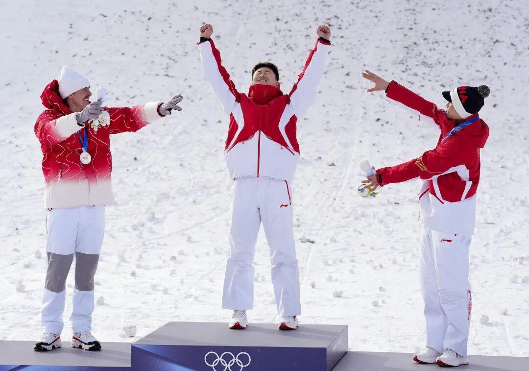 利维尼奥雪上公园再一次见证了中国队的夺金时刻!当王心迪以132.60分的完美一跳锁定金牌,他与徐梦桃成为了冬奥会自由式滑雪项目历史上第一对金牌夫妻!