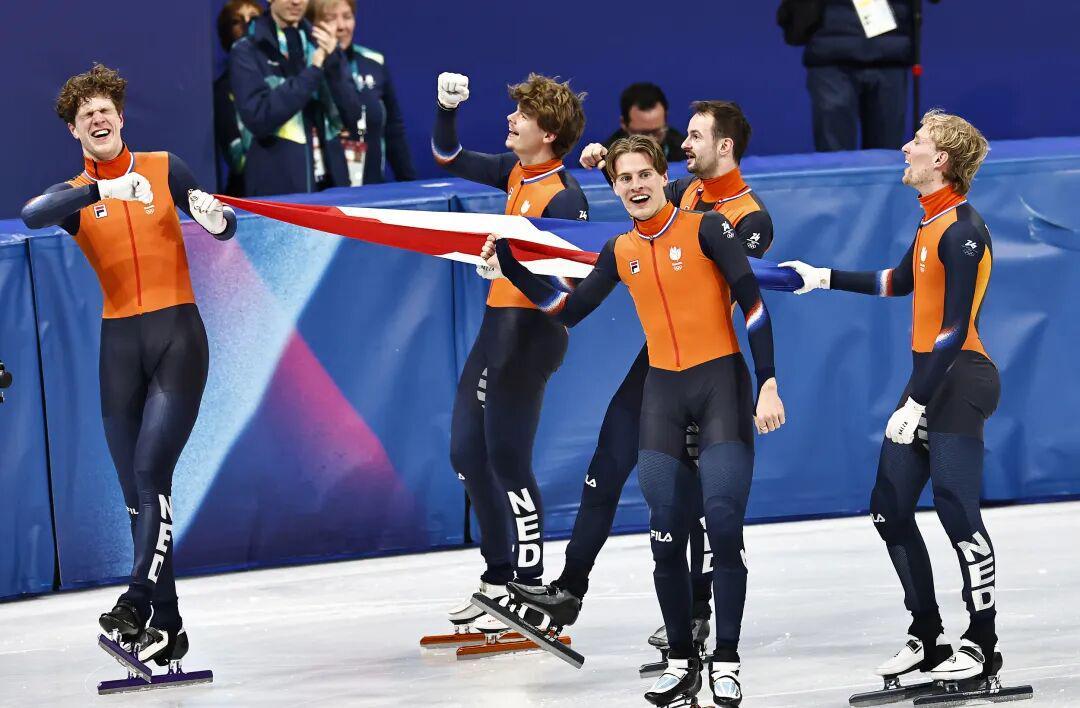 男子5000米接力A组决赛,荷兰队以无人可及的绝对优势夺冠,韩国队最后一弯完成超越获得亚军,主场作战的意大利队最终获得季军。
