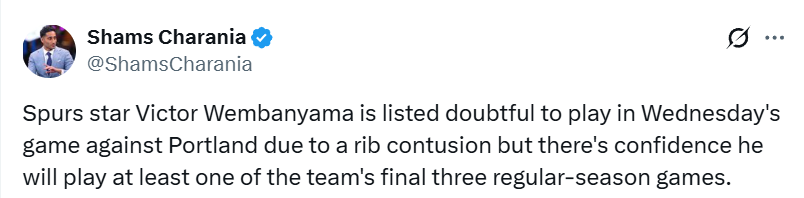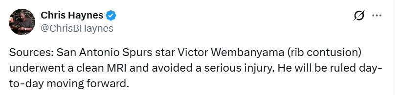 这么一来,至少对文班亚马和马刺来说,可以稍微松一口气了。马刺现在的目标根本不是常规赛,他们在追求更重要的东西。那么在文班复出之前,马刺方面在权衡什么?