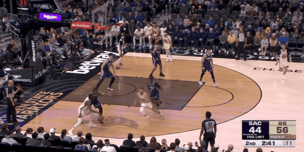 易边再战,库里仍然是替补出战,国王多次抓住机会迫近分差到个位数,但是勇士持续有进攻回应,双方分差在10分左右徘徊。库里在本节还剩下6分08秒登场,他与队友之间连续出现传接球配合失误,让对手拥有很好的反击机会。库里在本节遭到严防没有很好的出手机会,单节没有得分贡献,导致勇士在最后时刻进攻停滞,让国王打出一波9-0的进攻高潮,成功迫近分差到4分进入第四节。
