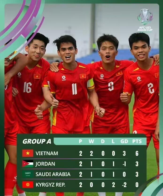 另一方面,越南1-0爆冷战胜沙特,三战全胜头名出线,成功避开日本队,与之相比,沙特作为东道主,小组就出局,创U23亚洲杯最大冷门。